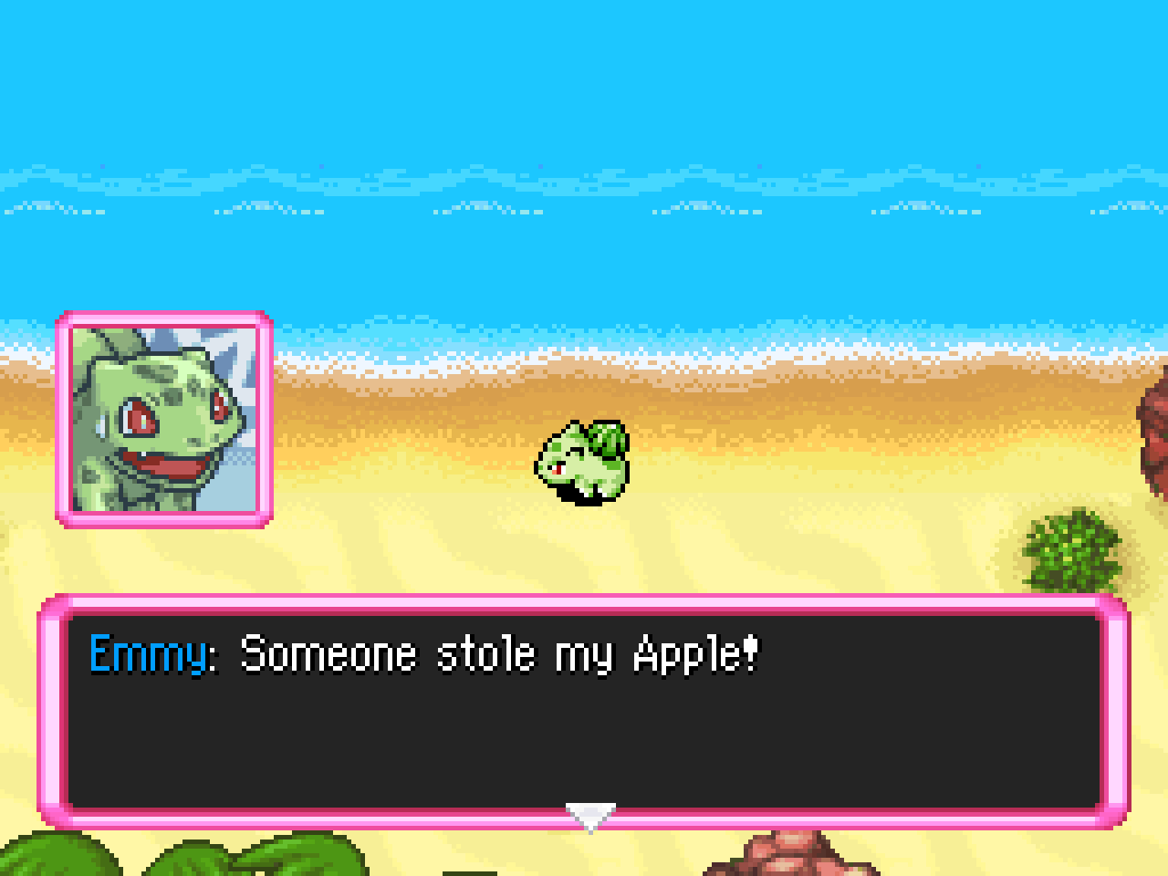 What do an Apple-loving Bulbasaur and an Apple-stealing Staryu have in common? An Apple they BOTH want to get back, apparently! This is a sequel to PMD: Chip, made for the SkyTemple hack jam.