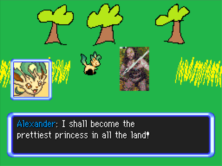 There are two custom music tracks—one for the final boss battle and one for the post-final battle cutscene—and three custom art pieces.