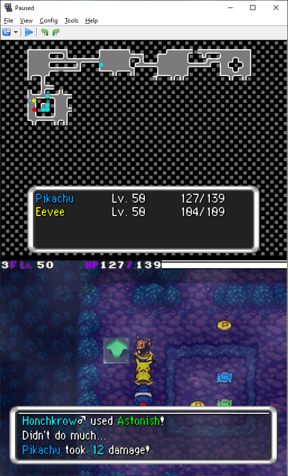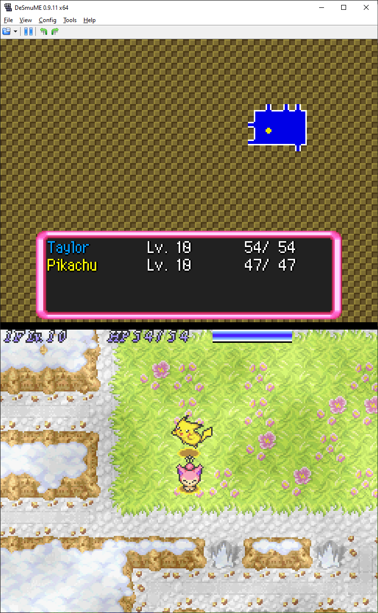 An updated vanilla-ish take on Explorers of Sky! Every dungeon has been revamped, with some contain special gimmicks (EX: Drenched Bluff has a dangerous 6th floor, Waterfall Cave is always rainy and max darkness, there's no food in the Northern Desert, etc.) The game is intended to have a higher difficulty curve, however it isn't unfair/kaizo-level hard.