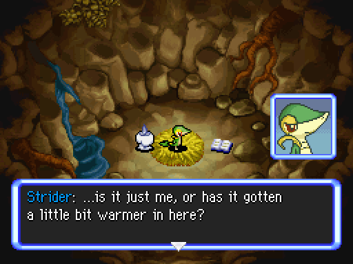 The player/human and partner of this hack are separate from the EoS duo, as this takes place in the far future.